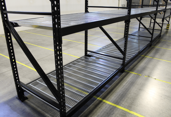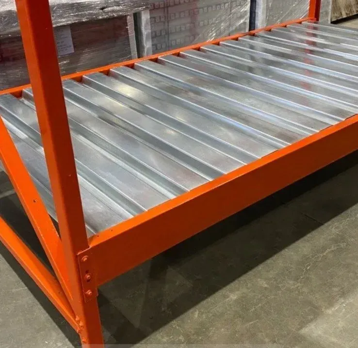 Corrugated decking is a solid steel panel with a ribbed design that provides a strong, durable surface for pallet rack shelves. Unlike wire mesh, corrugated decking offers complete coverage, making it ideal for storing small parts, cartons, or irregularly shaped items that might slip through open grid decks. It also enhances shelf rigidity and load distribution across the racking system.