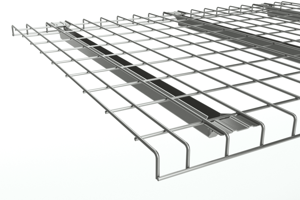 Wire decking enhances both safety and functionality in pallet rack systems by providing a strong, open-grid surface that supports pallets and loose materials. The wire mesh design improves visibility and ventilation while allowing sprinkler systems to function effectively in case of fire. Decking also prevents items from falling through or shifting between beams, creating a safer, more organized storage environment. Built for durability and compliance with modern warehouse safety standards, wire decking is a simple but essential addition to any pallet rack configuration.