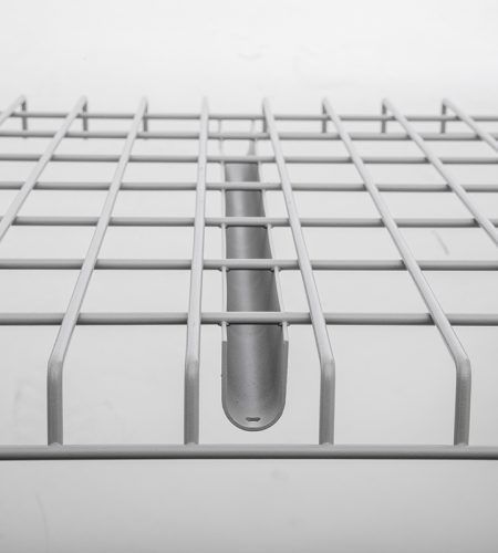 Inside waterfall wire decking is used when the outer beam face must remain visible for barcode labels, safety markings, or load capacity stickers. Instead of wrapping over the outside of the beam, the waterfall edge drops inside the front face, maintaining a clean, accessible appearance. This design improves organization and labeling visibility while maintaining the same reliable support and airflow that wire decking provides.