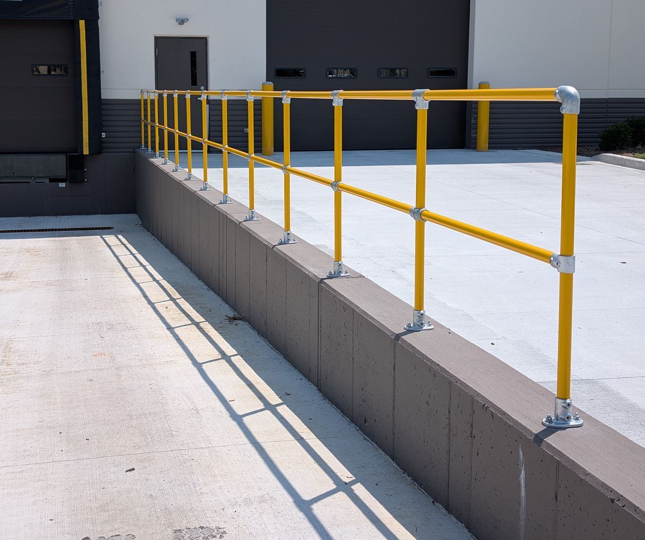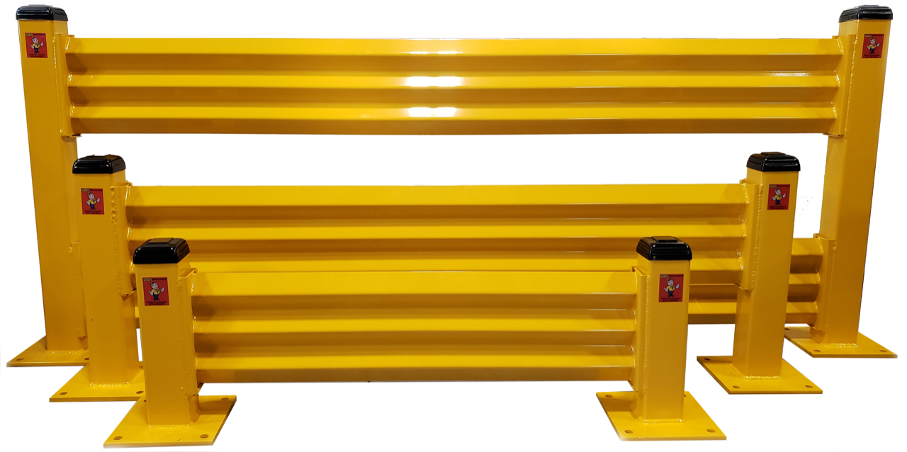 Guardrails provide a strong physical barrier that protects personnel, equipment, and pallet racking from forklift or vehicle impact in busy warehouse environments. Commonly installed around pedestrian walkways, machinery, and storage areas, guardrails help define safe traffic zones and prevent costly damage or injury. Constructed from heavy-duty steel and anchored securely to the floor, they offer long-term durability and visibility, making them an essential component of any warehouse safety system.