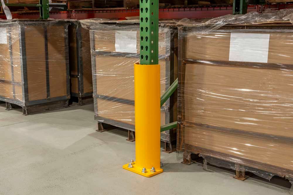 Column guards are protective barriers designed to shield pallet rack uprights from forklift and pallet impact. Installed at the base of each frame, they absorb and deflect collisions that could compromise rack integrity or lead to costly repairs. Available in both steel bolt-on and wrap-around styles, column guards are a simple and effective way to extend the life of your racking system and enhance overall warehouse safety.